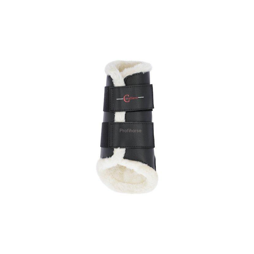 Drezurní chrániče na přední nohy ze syntetické kůže - ideální ochrana pro ochranu šlach koně se zvýšeným komfortem díky umělému beránku uvnitř. Jednoduché zapínání pomocí širokých suchých zipů na elastickám pásku.