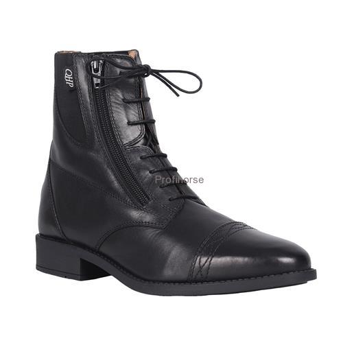 Jezdecká perka značky QHP jsou vyrobena z kvalitní měkké kůže. Perka mají postranní zip a uprostřed zavazování na tkaničky. V přední části jsou zdobená pruhem s černým vyšitím. Perka mají protiskluzovou podrážku a zarážku na šporny. Po stranách jsou elastické vsadky pro lepší napasování na nohu jezdce. Perka jsou spíše užší v oblasti nártu, jinak odpovídají velikosti, kterou běžně nosíte.