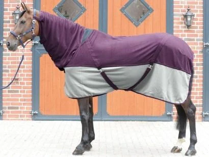 Velice kvalitní fleecová odpocka s integrovaným krkem a křížovým zapínáním pod břichem koně.