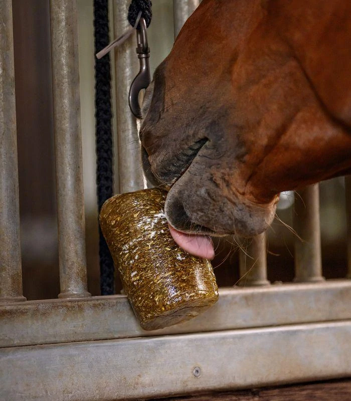 Bylinný liz StableSnack je bylinný lízací kámen s mnoha cennými, přírodními bylinkami. Díky šňůrce se snadno připevní k boxu, výběhu nebo volnému boxu, kde koni nabízí chutnou a smysluplnou aktivitu.