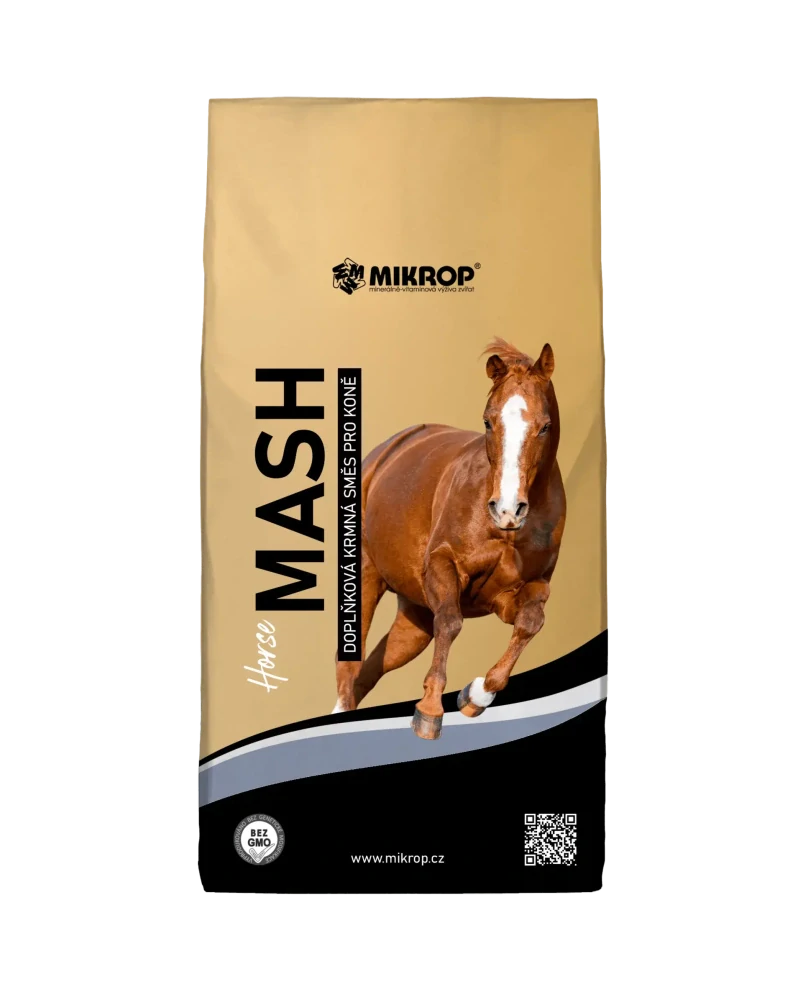 MIKROP® HORSE MUSCLE MASH je dietetické krmivo v sypké formě vhodné k podávání ve formě kaše nebo jako doplňku k běžné krmné dávce. Vhodný pro hobby koně, koňské seniory, hříbata a koně v růstu, i pro koně ve sportovní zátěž pro ideální regeneraci po výkonu.